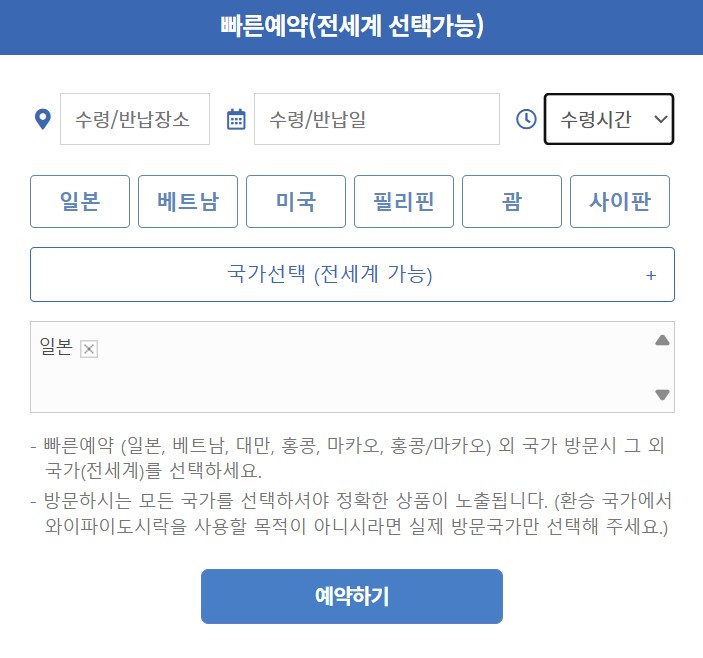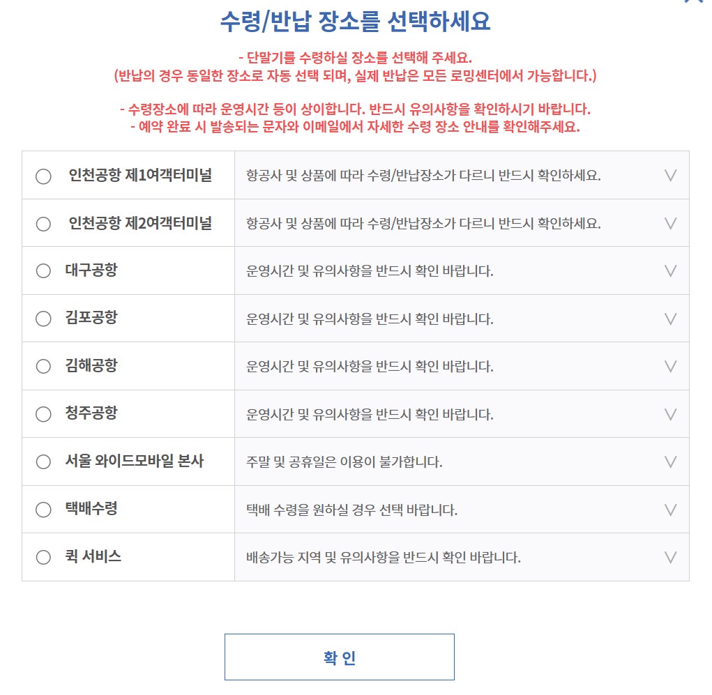 예약을 하실 수 있는데요. 공항에서 직접 픽업하고 반납하는 방법으로 수령하실 수 있습니다.