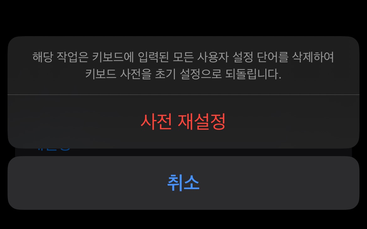 ‘키보드 사전 재설정’을 잘 눌러주셔야 합니다.